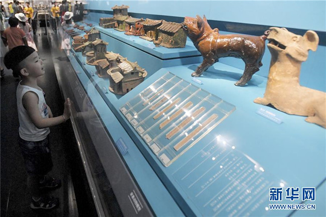 7月24日,小朋友在湖南省博物館“湖南人——三湘歷史文化陳列”展館參觀。