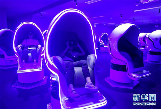 7月24日,家長和孩子在湖南省博物館通過虛擬現(xiàn)實設(shè)備觀影。