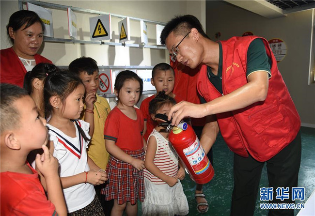 當(dāng)日,山東省汶上縣劉樓鎮(zhèn)舉行兒童安全教育活動(dòng),組織小朋友到安全教育體驗(yàn)基地學(xué)習(xí),加強(qiáng)安全意識(shí),平安度過暑假。 新華社記者 任鵬飛 攝