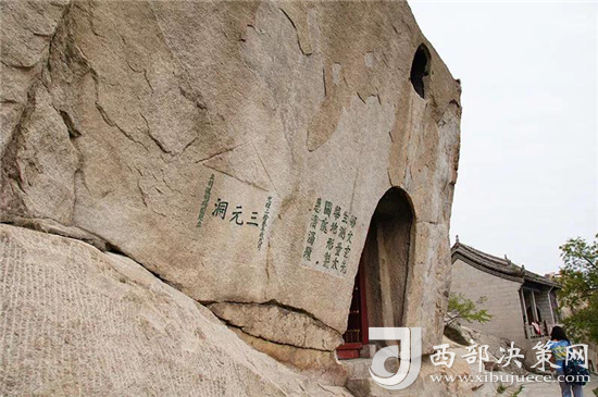 登西峰極目遠(yuǎn)眺,四周群山起伏,云霞四披,周野屏開,黃渭曲流,置身其中若入仙鄉(xiāng)神府,萬種俗念,一掃而空。宋名隱士陳摶在他的《西峰》詩中就有"寄言嘉遁客,此處是仙鄉(xiāng)"的名句。
