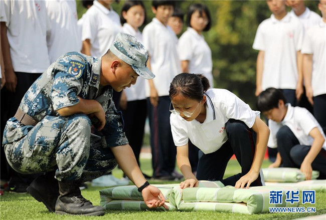 8月27日,河北省衡水市第二中學高一新生在教官指導下練習整理內務。新華社記者朱旭東攝