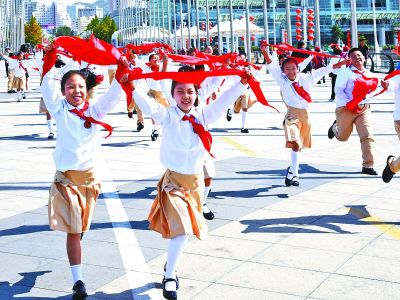 飛揚紅領(lǐng)巾獻禮新時代