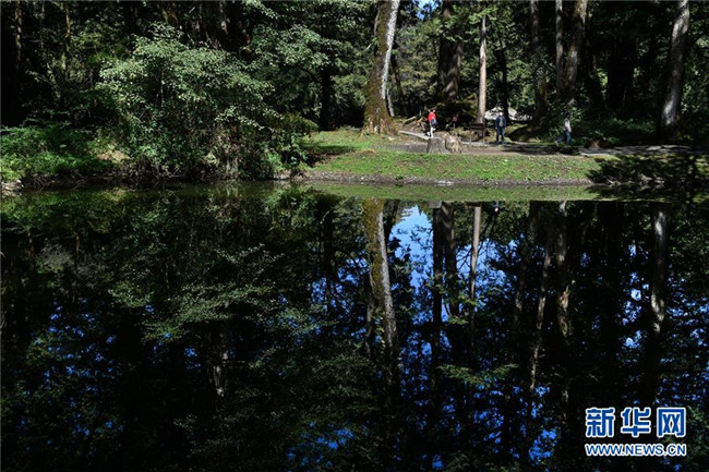 10月7日,游客在阿里山的樹(shù)林中游覽。