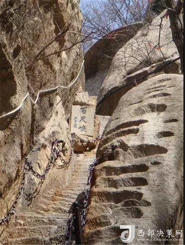 華山著名險道之一,它莽莽蒼蒼,嶺呈蒼黑色,筆直插天,好似蒼龍騰空,所以被稱為“蒼龍嶺”。