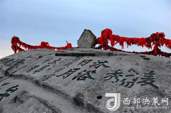 西峰為一塊完整巨石,渾然天成。西北絕崖千丈,似刀削鋸截,其陡峭巍峨、陽(yáng)剛挺拔之勢(shì)是華山山形之代表,因此古人常把華山叫蓮花山。華山西峰就是《寶蓮燈》中沉香劈山救出三圣母的地方?,F(xiàn)在翠云宮邊上有一巨石中間裂開(kāi),如被斧劈,名“斧劈石”,旁邊還樹(shù)立一柄長(zhǎng)把大斧。峰的西北面,直立如刀削,空絕萬(wàn)丈,人稱舍身崖。峰上崖壁題刻遍布,工草隸篆,琳瑯滿目。峰北絕頂叫西石樓峰,峰上楊公塔為楊虎城將軍所建,塔上有楊虎城將軍親筆題辭。塔下巖石上有“枕破鴻蒙”題刻,是書(shū)法家王鐸手跡。