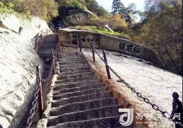 長空棧道位于華山南峰東側(cè)山腰,是華山派第一代宗師元代高道賀志真為遠(yuǎn)離塵世靜修成仙,在萬仞絕壁上鑲嵌石釘搭木椽而筑。長空棧道的盡頭便是思過崖。