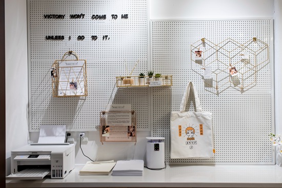 11月24日,北京定福莊一家自習室一角。這里為顧客提供打印服務(wù)和免費的紙張,一旁展示的是店家設(shè)計的帆布包。