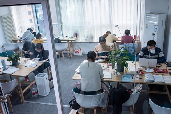 11月22日,袁翊宸在北京中關(guān)村的一家付費自習室中學習。從5月開始,他每天乘坐40分鐘的公交車來到這家自習室,備考北大金融專業(yè)的研究生。