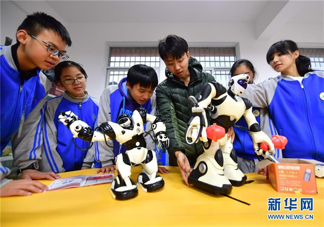 12月5日,在廣西融水苗族自治縣民族中學(xué),郭浩坤(右三)在給學(xué)生們上課。郭浩坤是西北工業(yè)大學(xué)的在讀碩士研究生,今年9月來(lái)到融水苗族自治縣民族中學(xué),擔(dān)任物理老師。 新華社記者 黃孝邦 攝