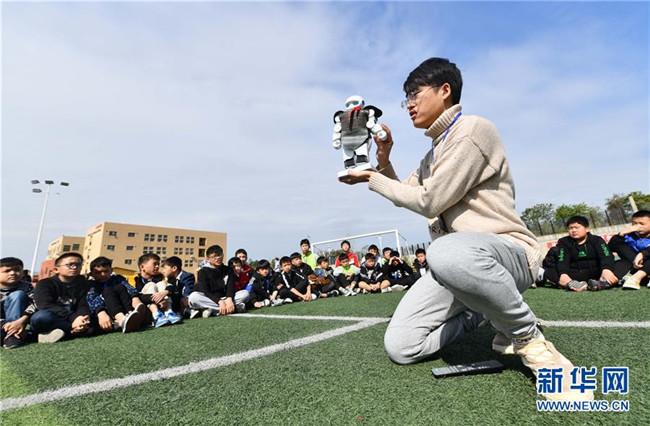 12月5日,在廣西融水苗族自治縣思源實(shí)驗(yàn)學(xué)校,譚博天在戶(hù)外給學(xué)生們上科技課。譚博天是西北工業(yè)大學(xué)的在讀碩士研究生,今年9月來(lái)到融水苗族自治縣思源實(shí)驗(yàn)學(xué)校,擔(dān)任班主任。 新華社記者 黃孝邦 攝