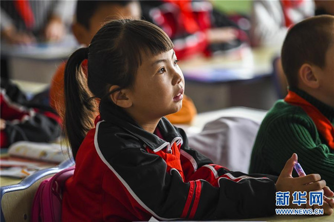在哈密幸福村小學里,孩子們在用電采暖的教室里上課(10月22日攝)。新華社記者 趙戈 攝