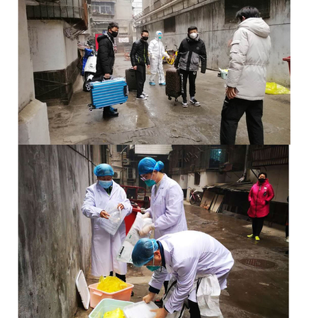 接轉疫區(qū)人員忍饑挨餓:在執(zhí)行火車站接送湖北籍來西安人員去定點場所隔離觀察的任務中,她身穿防護服,在全副武裝的情況下行動多有不便,既無法吃飯喝水,又無法上衛(wèi)生間。獨自一人在天空中飄著雪花的西安火車站北廣場,焦急等候,不停打電話聯系接轉人員銜接事項,只怕中間出什么差錯,無法順利完成湖北籍人員與社區(qū)的轉運對接任務。與火車站轉運站的工作人員及領導多次溝通協調,現場解決了工作中雙方未對接到位的一些問題,避免了矛盾的升級。及時將現場情況及時反映給中心領導和具體負責工作人員,并為制定下一步具體工作方案提供了切實可行的建設性建議。就這樣不吃不喝隱忍著從下午四點一直堅守到夜晚十點。