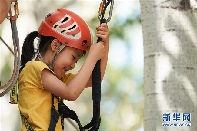 5月31日,小朋友在北京朝陽公園體驗戶外運動。新華社記者 鞠煥宗 攝