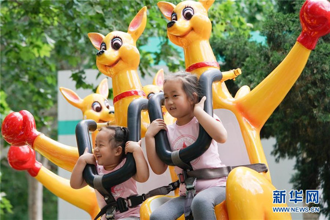 5月31日,小朋友在北京朝陽公園游玩。新華社記者 鞠煥宗 攝