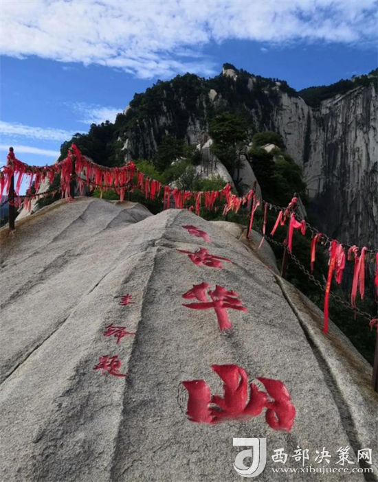 眾所周知 “自古華山一條路”是一道奇觀。這條道路或越澗跨溪,或臨崖盤(pán)山,或入崖間深谷,或走峭壁嶺脊,或平坦或曲陡,或?qū)挸ɑ颡M窄,曲折變化,跌宕起伏,把人帶入意境深邃的萬(wàn)般景象之中。道路兩旁遍布的摩崖石刻,使人仿佛走進(jìn)一個(gè)書(shū)法藝術(shù)的走廊。一步一景一傳說(shuō),更使華山沿途披上了濃厚的文化色彩。