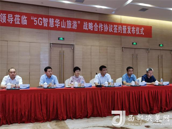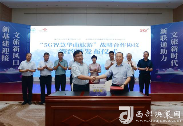 西部決策網(wǎng)訊 7月16日下午,“5G智慧華山旅游”戰(zhàn)略合作協(xié)議簽約暨發(fā)布儀式在華山諾富特酒店舉行。渭南市人民政府副市長高潔,中國聯(lián)通陜西省分公司副總經(jīng)理李武,中共華陰市委書記、華山風(fēng)景名勝區(qū)管理委員會黨工委書記朱忠效,渭南市文化和旅游局局長常偉,華山風(fēng)景名勝區(qū)管理委員會黨工委副書記、常務(wù)副主任趙曉龍,陜西華山旅游集團(tuán)有限公司黨委書記、董事長張泉,渭南市委網(wǎng)信辦副主任郭茂盛見證簽約并共同啟動“5G智慧華山旅游”。華旅集團(tuán)總經(jīng)理高江宏與中國聯(lián)通渭南分公司總經(jīng)理李亞軍代表雙方簽約。集團(tuán)副總經(jīng)理趙江鋒與中國聯(lián)通陜西分公司副總經(jīng)理李武分別致辭。