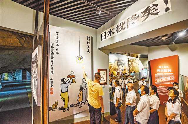 9月3日,九龍坡區(qū),重慶建川博物館抗戰(zhàn)文物博物館,觀眾正在觀看豐子愷于1945年8月18日創(chuàng)作的《勝利之夜》。記者 龍帆 攝/視覺(jué)重慶