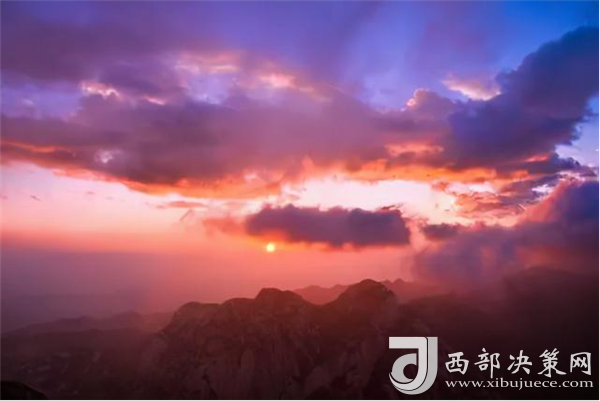 華山日出亦被列為華山自然風光中的重要景觀之一。是時,但見夜幕自東方悄然隱退,晨曦初露,漸漸霞光瑰麗,云源奔涌。瞬間,一輪火球噴薄而出,繼而光芒四射,氣象萬千,整個世界大放光明,游人身心為之一振。待云霧散盡,蒼松翠柏,則更加清麗悅目,美妙神奇。故而,游名山者必登華山,登華山者必觀日。