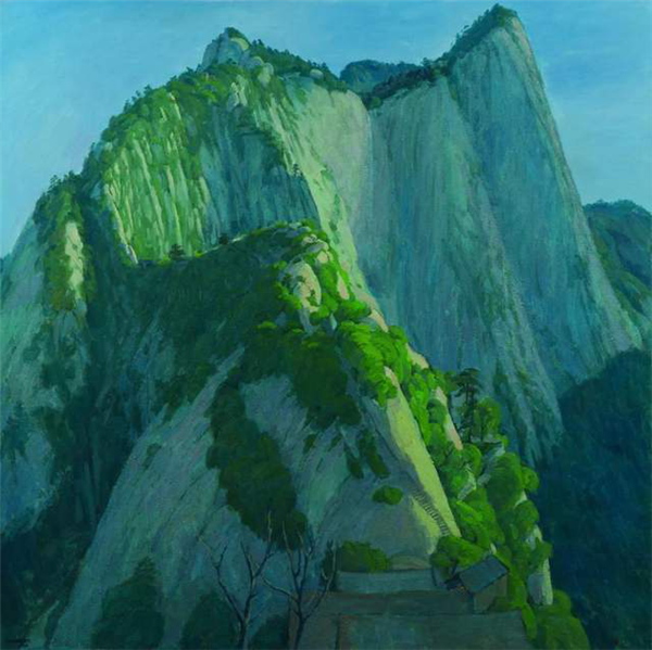 西岳華山,氣象非凡。明代王履在華山作畫(huà),面對(duì)華山曾言:“吾師目、目師心、心師華山”。在華山曠野山林的無(wú)人之境,田學(xué)森以一顆敬畏自然之心,懷著與先賢和天地精神交流的渴望,感受華山文化的厚重并接受來(lái)自華山精神的滋養(yǎng),澄懷觀道,借鑒傳統(tǒng)山水畫(huà)的意境,嘗試用西方油畫(huà)的材料技法來(lái)描繪華山的精魂。