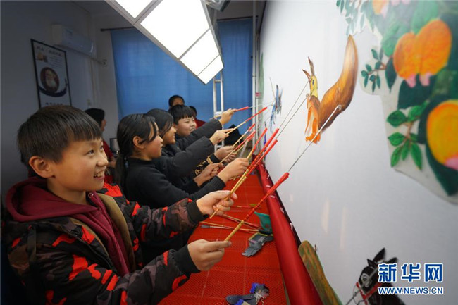 當(dāng)日,在河北省沙河市,當(dāng)?shù)仄び皯蛩嚾俗哌M(jìn)沙河市西油村小學(xué),為學(xué)生們展演皮影藝術(shù)、傳授技藝。今年以來,河北省沙河市積極開展“非遺進(jìn)校園”活動(dòng),組織沙河皮影戲、孔明鎖、孫氏太極拳等非遺項(xiàng)目進(jìn)校園活動(dòng)80多場。