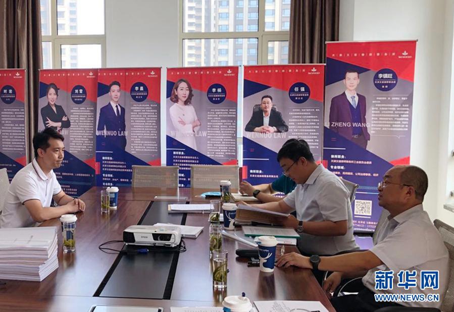 全國人大代表才華(右一)在天津一家律師事務(wù)所調(diào)研(資料照片)。新華社發(fā)