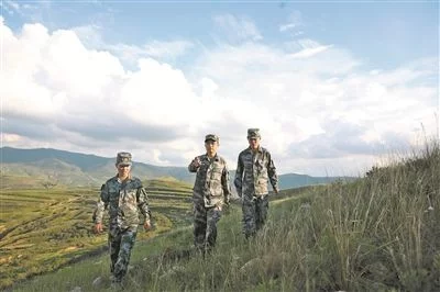 淳靜(中)帶領(lǐng)技術(shù)人員勘察陣地。