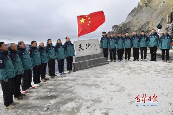 正在天池主峰崗位上默默工作的全國勞動(dòng)模范吳金明,也在東北最高峰為祖國母親送上節(jié)日的祝福。他動(dòng)情地說:“今天是新中國72周年華誕,我祝福偉大祖國經(jīng)濟(jì)更繁榮、人民更幸福、國力更富強(qiáng)。”