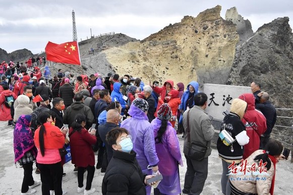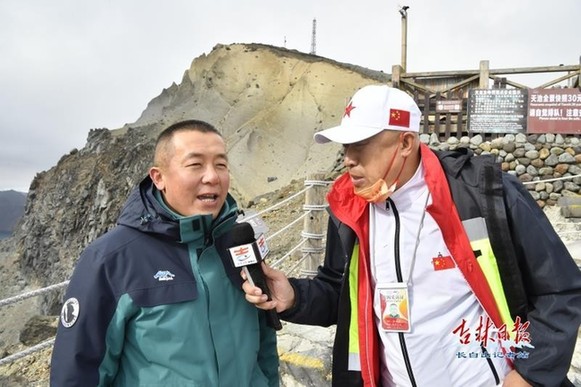 10月1日,吉林日?qǐng)?bào)全媒體記者來到長白山景區(qū),迎接國慶長假到長白山的游客,與他們共同分享假期的喜悅。