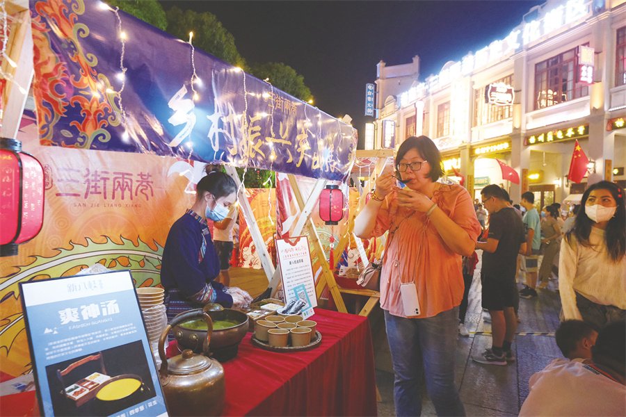 據(jù)悉,國慶期間,有關部門還在“三街兩巷”舉辦“八桂風物 獻禮華誕——助力鄉(xiāng)村振興特色展”,展示展銷北海潿洲島特色干海味、玉林博白特色牛巴、永福羅漢果花茶等特色農(nóng)副產(chǎn)品,以及龍勝侗族扎染技藝、靖西壯族藍染技藝等廣西非物質(zhì)文化遺產(chǎn)工藝產(chǎn)品,鞏固脫貧攻堅成果、助力鄉(xiāng)村振興。(記者宋延康)