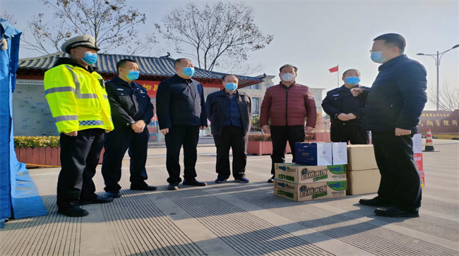 西部決策網(wǎng)訊(韓宗憲)1月2日,寶雞市鳳翔區(qū)委常委、宣傳部部長賈亞斌赴西寶高速鳳翔出口、旬鳳高速西鳳口、橫水尹家塢卡點檢查指導(dǎo)新冠肺炎疫情防控工作,為節(jié)假日仍奮戰(zhàn)在一線的執(zhí)勤民警、醫(yī)務(wù)人員和志愿服務(wù)者送去自熱米飯、方便面、純牛奶等慰問品。鳳翔區(qū)民政局、區(qū)慈善協(xié)會負責(zé)同志陪同慰問。