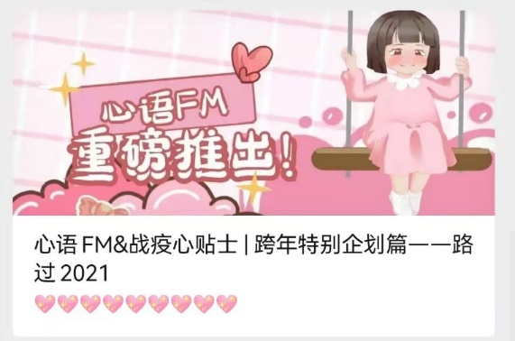 疫情防控期間,考慮到學(xué)生學(xué)習(xí)生活場所受限,學(xué)生情緒容易受到環(huán)境影響。心理健康教育中心通過新媒體開展“戰(zhàn)疫心貼士”、心語FM專欄,每天為該校學(xué)生推送疫情心理調(diào)節(jié)小妙招及各類心理援助資源。相繼發(fā)布的15篇推文有效地幫助學(xué)生們掌握了有關(guān)疫情的心理健康知識(shí),學(xué)會(huì)了自我健心減壓,引導(dǎo)他們理性對待疫情,不恐慌、不信謠、不傳謠,保持良好心理狀態(tài)。