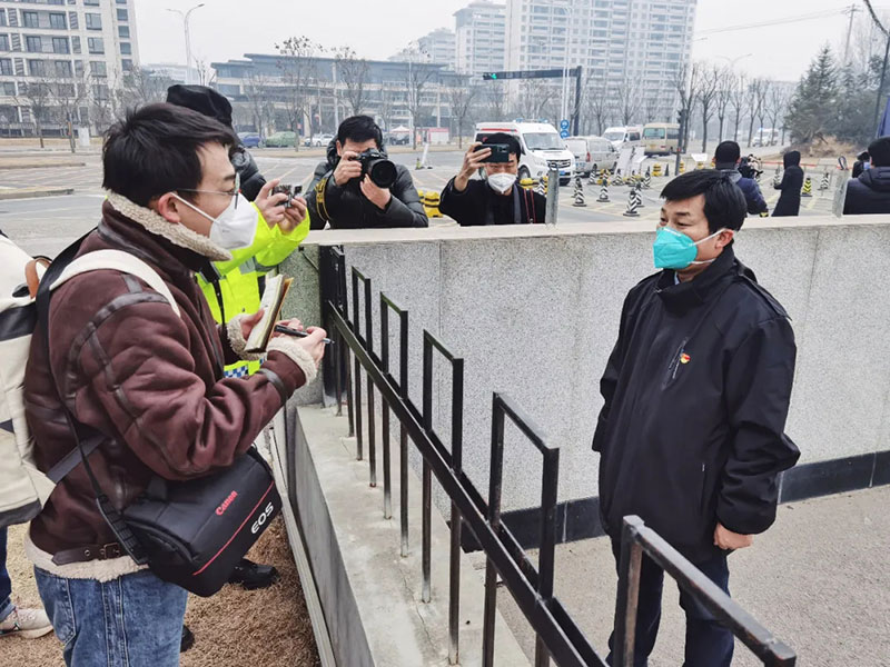 2022年1月4日,人民日?qǐng)?bào)社記者原韜雄(左一)在新冠確診病例收治點(diǎn)西安市胸科醫(yī)院采訪。