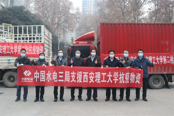 中國水電三局黨委書記、董事長張育林得知學校急需防疫和生活物資后,要求特事特辦,急事急辦,1月4日中午,中國水電三局緊急采購的醫(yī)用外科口罩、84消毒液、過氧乙酸、水洗手消毒凝膠等第一批防疫抗疫物資即送達西安理工大學。
