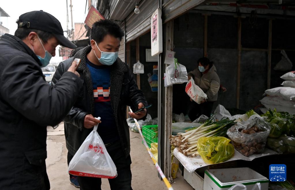 1月7日,西安市未央?yún)^(qū)西唐寨村村民在購(gòu)買(mǎi)食品。
