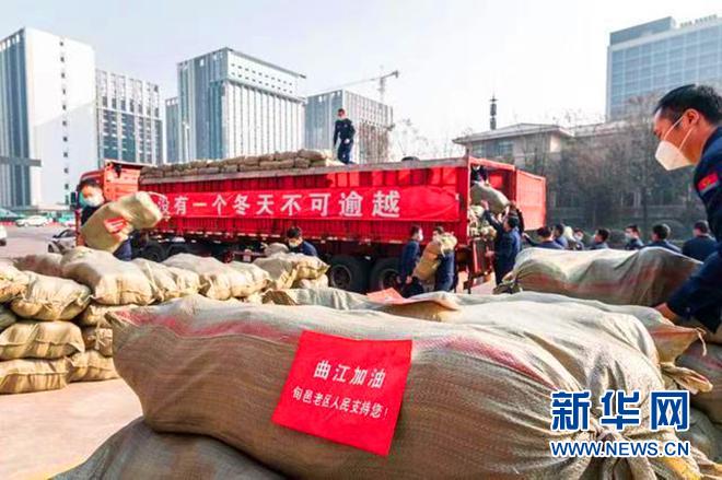 “沒有一個冬天不會過去,沒有一個春天不會到來。”2022年元旦過后,貼著車體標(biāo)語的運輸車隊,滿載著30萬陜西旬邑紅色老區(qū)父老鄉(xiāng)親暖暖的情誼直奔西安曲江。