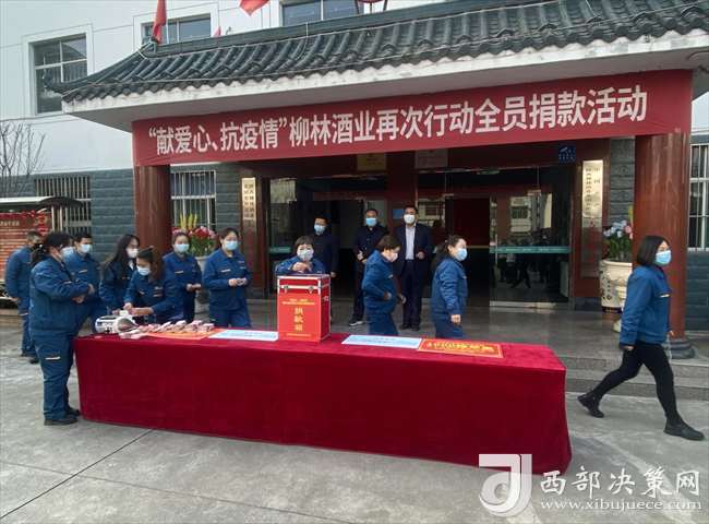 西部決策網(wǎng)訊(韓宗憲)1月10日上午,陜西柳林酒業(yè)集團舉辦“獻愛心 抗疫情”全員捐款活動。中共鳳翔區(qū)委副書記馬少輝、鳳翔區(qū)委常委、宣傳部部長賈亞斌,陜西柳林酒業(yè)集團總經(jīng)理柳林、常務副總周峰、總工程師胡建祥、行政副總呂廣田、財務總監(jiān)楊永忠出席活動。