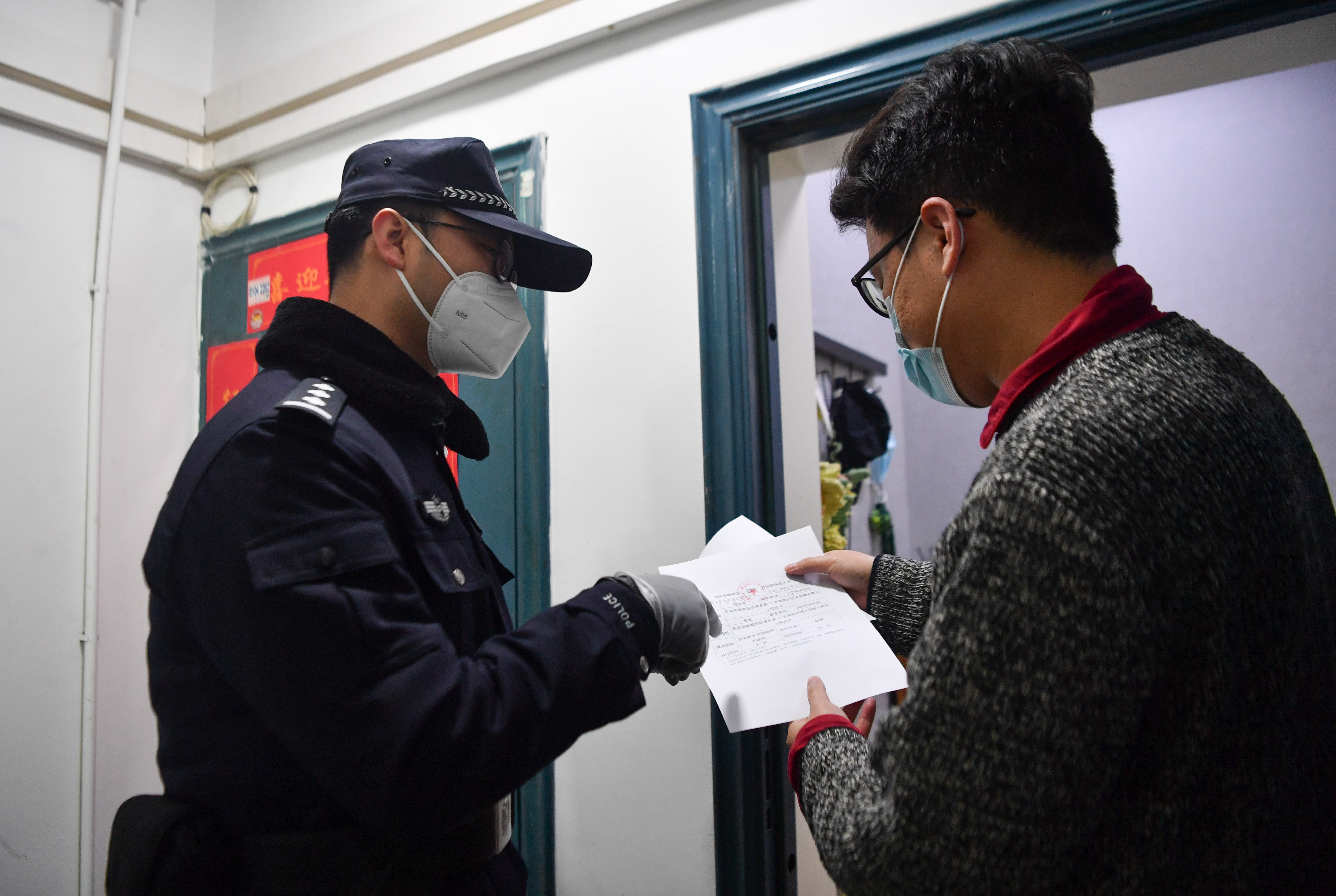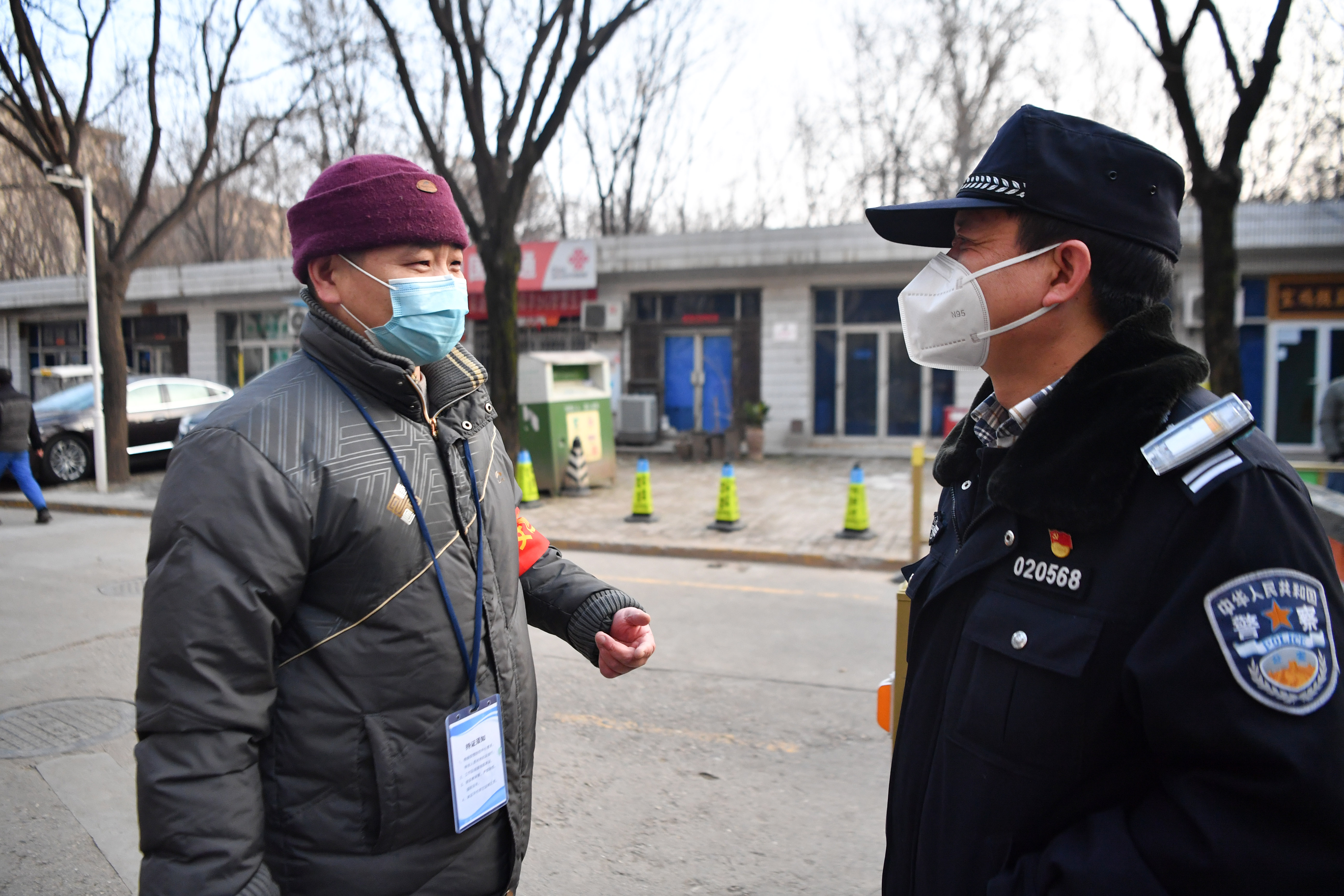 1月10日,西安市公安局浐灞生態(tài)區(qū)分局民警在負責執(zhí)勤的社區(qū)向居民講解疫情防控政策。新華社記者 張博文 攝
