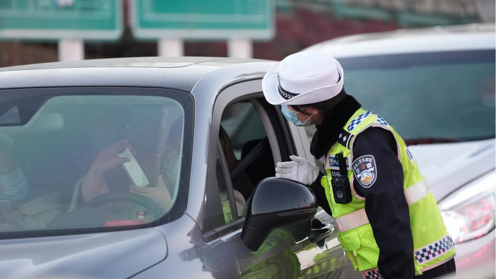 “韋曲收費(fèi)站每天進(jìn)出1000余輛車,其中還有不少冷鏈運(yùn)輸車輛,我們更要耐心細(xì)致做好檢查。”收費(fèi)站前,交警朱李和她的戰(zhàn)友們穿梭在車流中,查驗(yàn)司乘人員相關(guān)證件,“我們在這里就是要當(dāng)好守門員,從源頭上切斷疫情蔓延。”