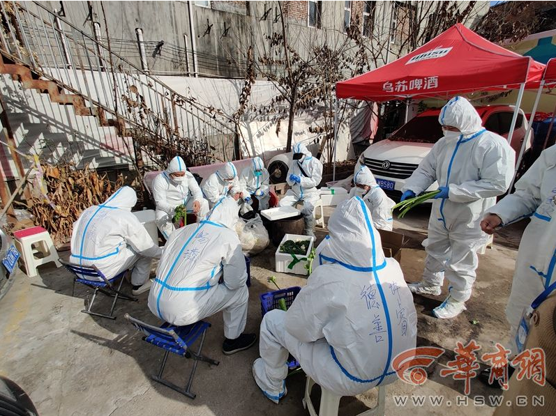 從2021年12月27日起,德善愛心廚房每天免費為古城一線抗疫工作者、滯留人員、腫瘤醫(yī)院病人等送出愛心餐1000多份。志愿者也從最開始的的5名增加到32名。他們身份不同但又各有分工,每天負責(zé)將1000余份愛心餐準(zhǔn)時送到各個點位。“我們分了好幾個小組,有擇菜的、切菜的、登記信息、管理采購的,每個組都有專門的人負責(zé),其余人機動,他們真的都非常棒。”許凱說道。
