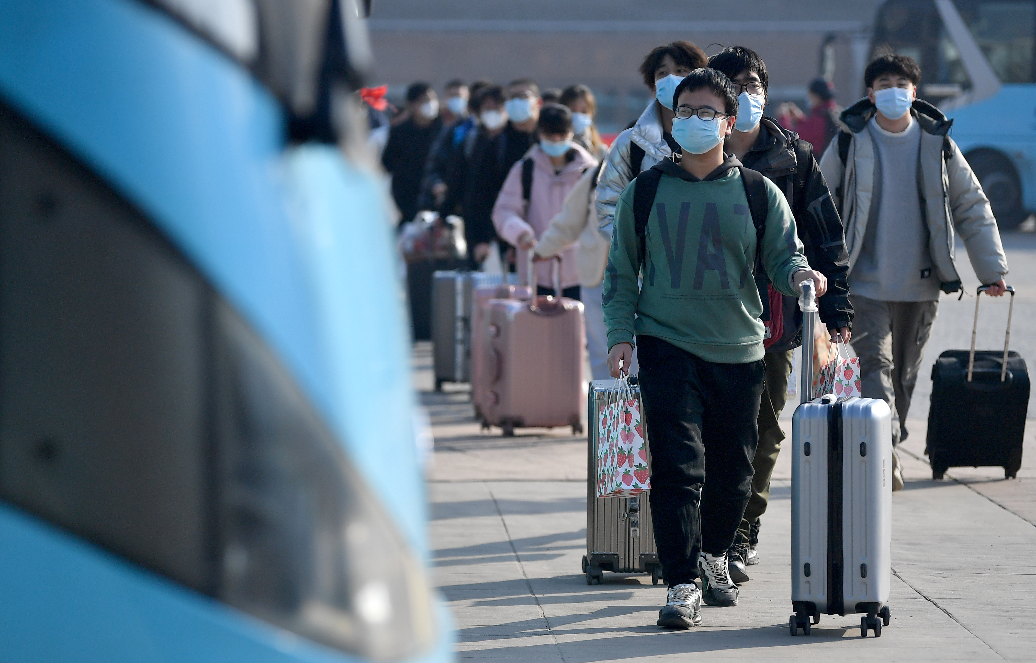1月16日,西安北客站,離校返鄉(xiāng)的西安高校學(xué)生排隊(duì)進(jìn)站。新華社發(fā)(鄒競(jìng)一 攝)