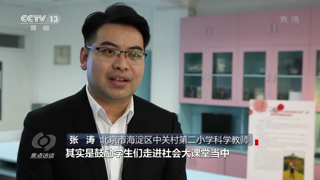 北京市海淀區(qū)中關(guān)村第二小學(xué)科學(xué)教師張濤說:“在這個過程當(dāng)中,其實是鼓勵學(xué)生們走進(jìn)社會大課堂當(dāng)中,去發(fā)現(xiàn)生活中的一些科學(xué)問題,收集一手資料,去解決科學(xué)問題。”