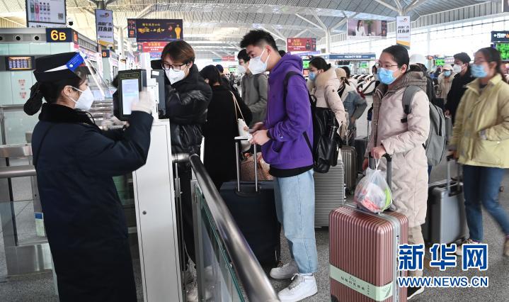 1月16日,西安北客站,離校返鄉(xiāng)的西安高校學生在排隊進站。新華社記者 陶明 攝