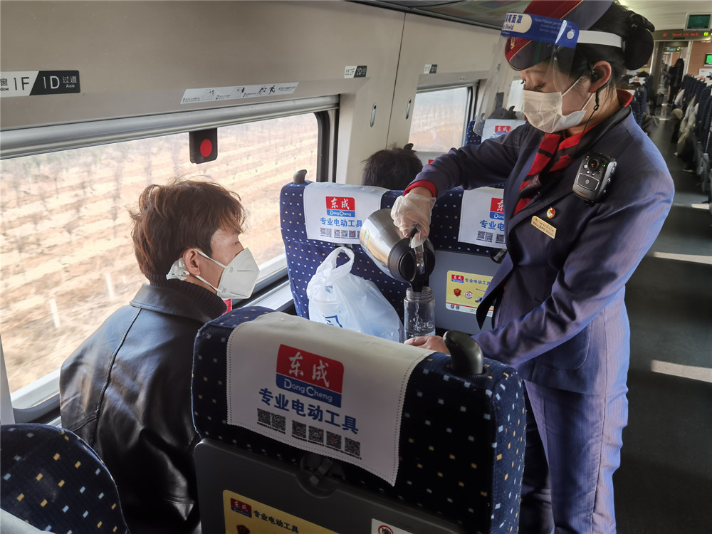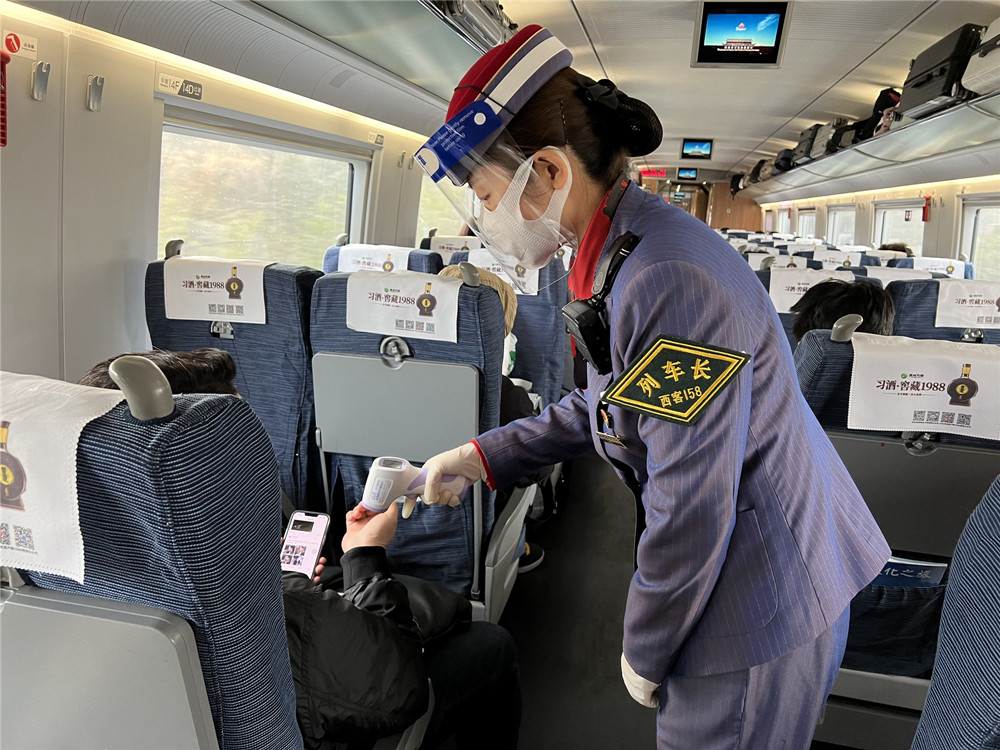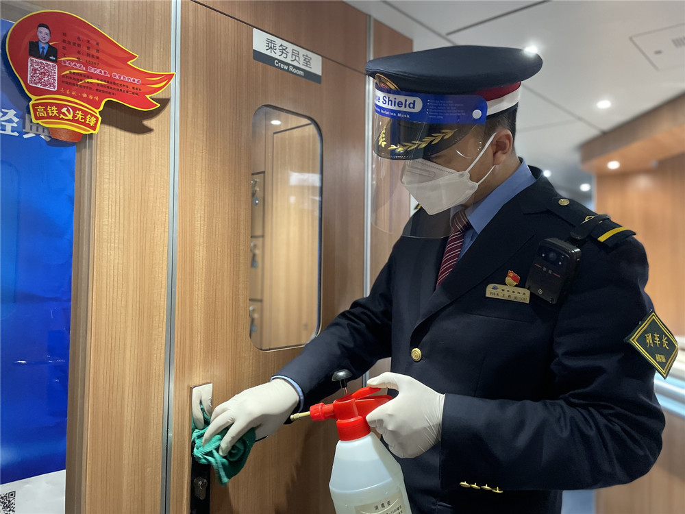 面對今年春運(yùn)疫情防控形勢和大客流安全運(yùn)輸壓力,全體高鐵乘務(wù)人員將嚴(yán)把安全關(guān),加強(qiáng)設(shè)施設(shè)備檢修維護(hù)。主動做好疫情防控,加強(qiáng)車廂內(nèi)消毒和衛(wèi)生清掃、為旅客提供安全衛(wèi)生的餐飲產(chǎn)品,加密列車公共部位消毒頻次、科學(xué)做好發(fā)熱旅客處置、加強(qiáng)旅客防護(hù)用品佩戴提醒等,用心為旅客服務(wù),讓旅客平安健康出行。