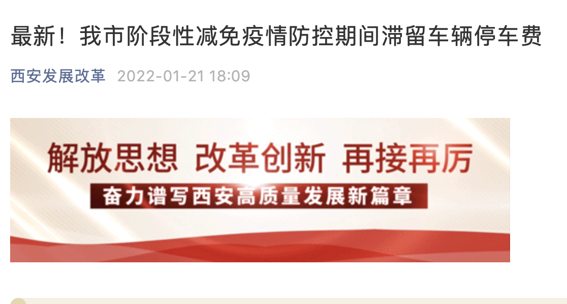 3.2021年12月23日零時前以及機動車所在區(qū)縣疫情防控指揮部明確解除本小區(qū)、停車場封閉之日后,停車費按照停車場原定臨時停放收費標準收取。因車主處于隔離狀態(tài)無法取車,減免時間需延長的,以車主提供解除隔離相關證明材料為準。