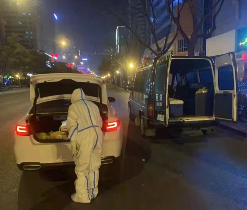 疫情之初,街道核酸檢測樣本的打包和轉(zhuǎn)運(yùn)工作任務(wù)艱巨,施煜被安排參與轉(zhuǎn)運(yùn)工作。經(jīng)過一系列嚴(yán)格的崗前培訓(xùn)后他開始上崗。收集轉(zhuǎn)運(yùn)核酸樣本的過程中需要二級防護(hù),這期間需要吃飯喝水的話就得更換一套新的防護(hù)服,為了節(jié)省下一套防護(hù)服,施煜和他的同事們都選擇在工作中不吃不喝,兩頓飯之間經(jīng)常間隔十幾個小時。