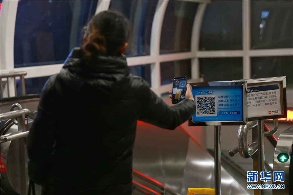 1月25日,西安地鐵三號(hào)線(xiàn)辛家廟站B口,市民在進(jìn)行掃碼登記。新華網(wǎng) 王智超 攝