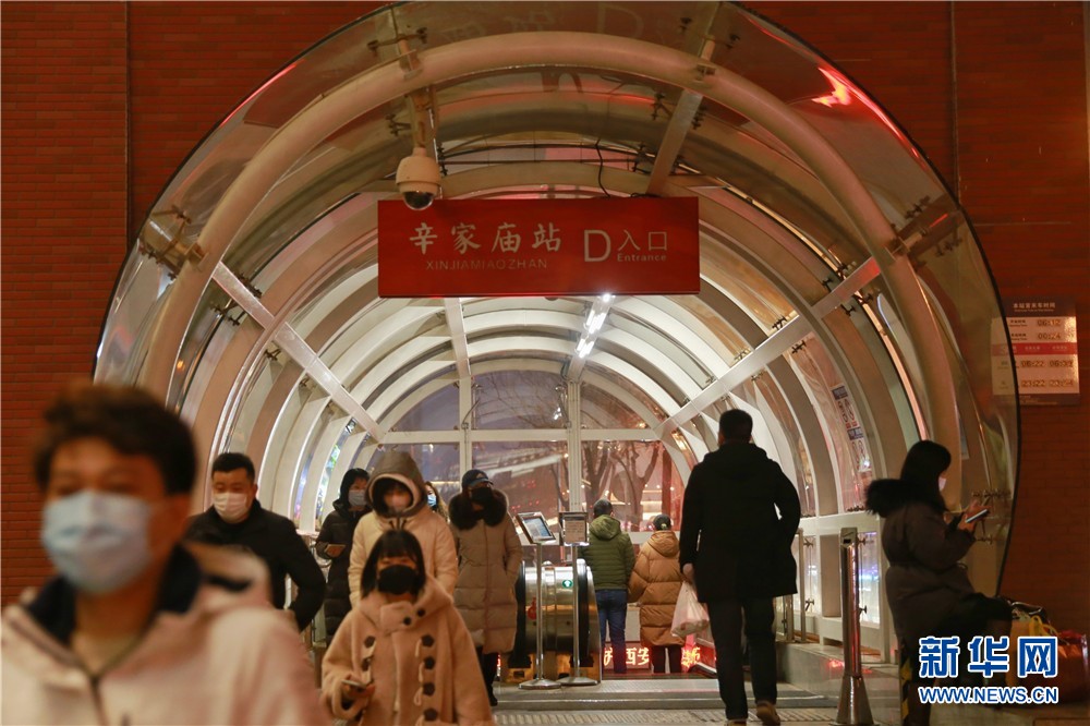 1月25日,西安地鐵三號(hào)線(xiàn)辛家廟站D口來(lái)往的進(jìn)出站乘客。新華網(wǎng) 王智超 攝