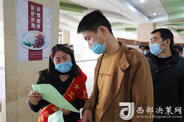 在山陽煤礦職工食堂里,大家都正在忙碌著打飯,但有一個畫面卻溫暖著每一個人的心窩,記者用鏡頭捕捉到這樣一幅畫面,身為家屬協(xié)管員的趙翠芝,給每一位進來的職工發(fā)放疫情知識宣傳單,并耐心的給她們講解其中的內(nèi)容以及疫情防護注意事項。