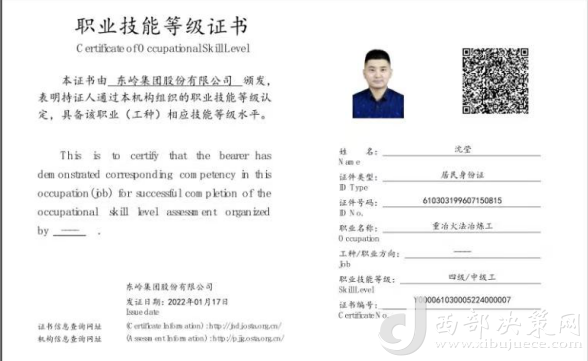 沈瑩,是東嶺冶煉公司的一名技術員,去年11月,他通過參加公司舉辦的新型學徒制培訓班,考取了“重冶火法冶煉工”中級工職業(yè)技能等級證書,不僅得到了政府1500元獎勵補貼,還在今年3月被公司從技術員提拔為車間技術副主任助理。