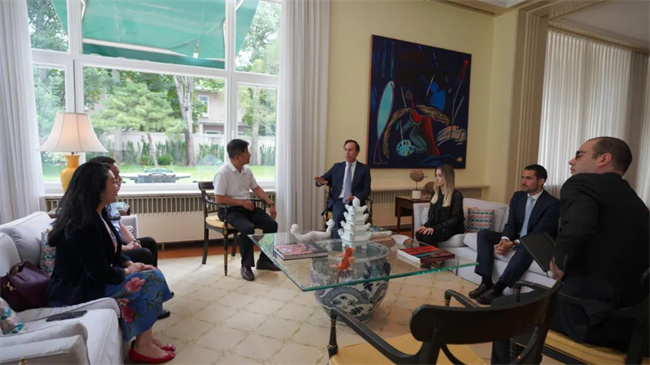 陜西西鳳酒股份有限公司副總經(jīng)理高洪濤一行在葡萄牙駐華大使官邸交流現(xiàn)場(chǎng)